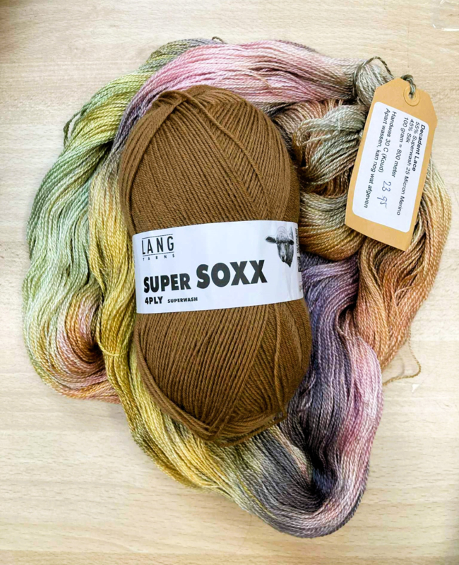 Garen: Langyarns sokkenwol 4Ply 39 met handgeverfde wol-zijde lace - genoeg tot maat 3XL