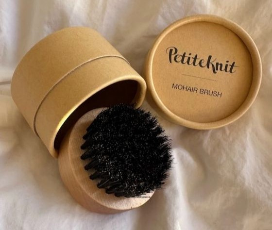 De PetiteKnit Mohair Brush is gemaakt van beukenhout en wilde zwijnenharen en zit verpakt in een kartonnen opbergdoosje.